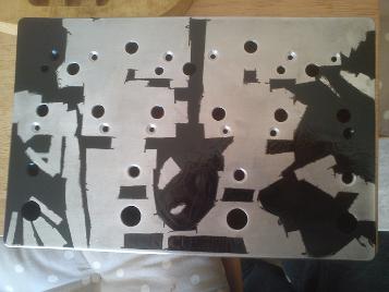 To the left is the box once toner transfer is complete. Good preparation is key to getting a good transfer. Now we need to mask the remaining areas of the box that we do not want to be etched. This is done using masking tape and good old nail varnish. Don't use your wife's best nail varnish for this as the results will be bad. The box will etch really well, but your nuts will hurt an awful lot more.
